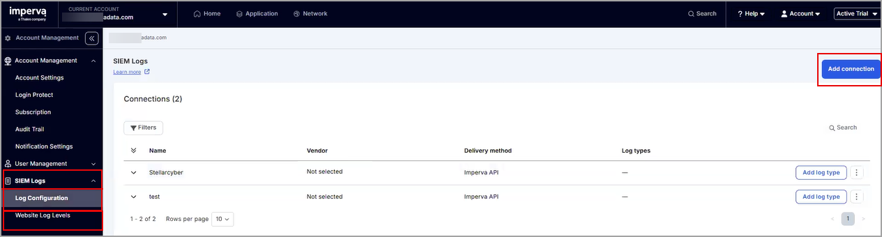 Next under SIEM Logs, select Log Configuration. Then click Add Connection.