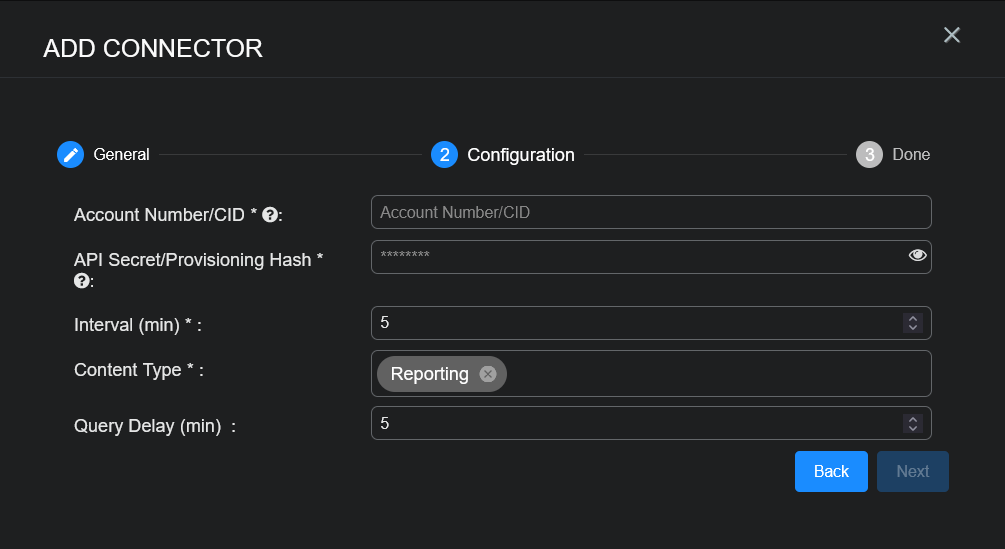 Stellar Cyber conducts a basic connectivity test for the connector and reports a success or failure result. A successful test indicates that you entered all of the connector information correctly.