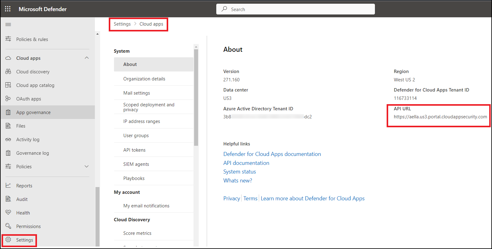 In the Microsoft Defender Portal (https://security.microsoft.com/), select Settings and then select Cloud Apps.