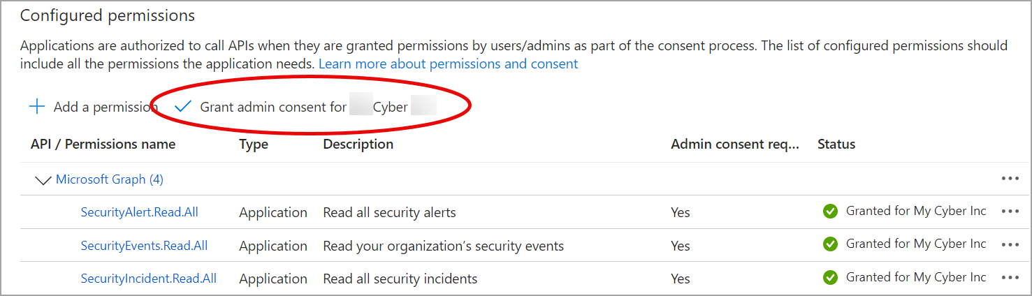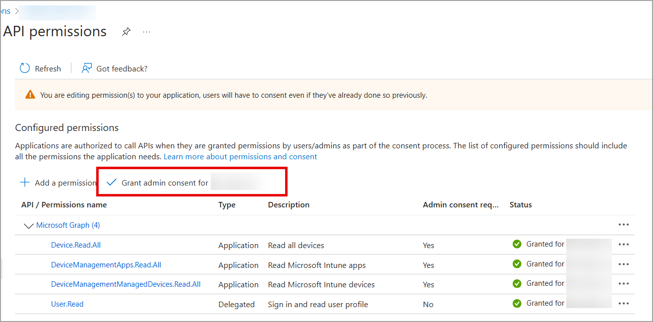 If you are the super admin, grant the permissions. Select the checkmark to Grant admin consent for <account name>.