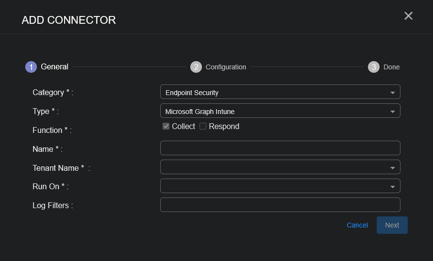 To add a Microsoft Graph Intune connector in Stellar Cyber: