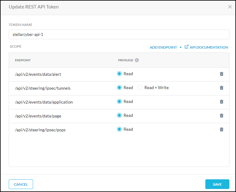 Select the privilege for the endpoints you want to select. At a minimum, select Read.