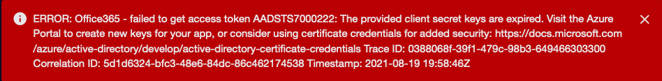 Enter the API Access Key. This is Value string you copied from Certificates & secrets.