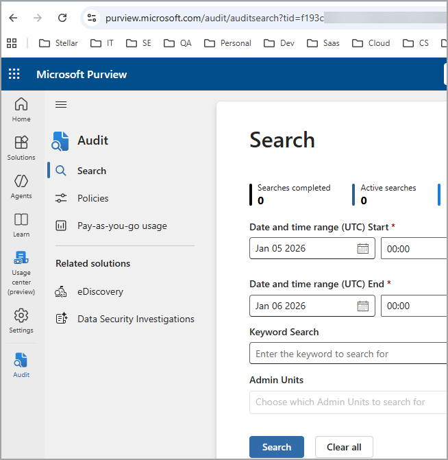 Audit General Audit Exchange Audit Sharepoint Audit Azure Active Directory DLP All |