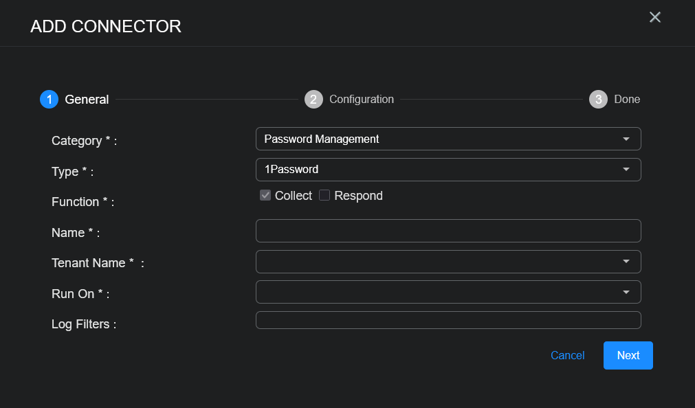 To add an 1Password connector in Stellar Cyber: