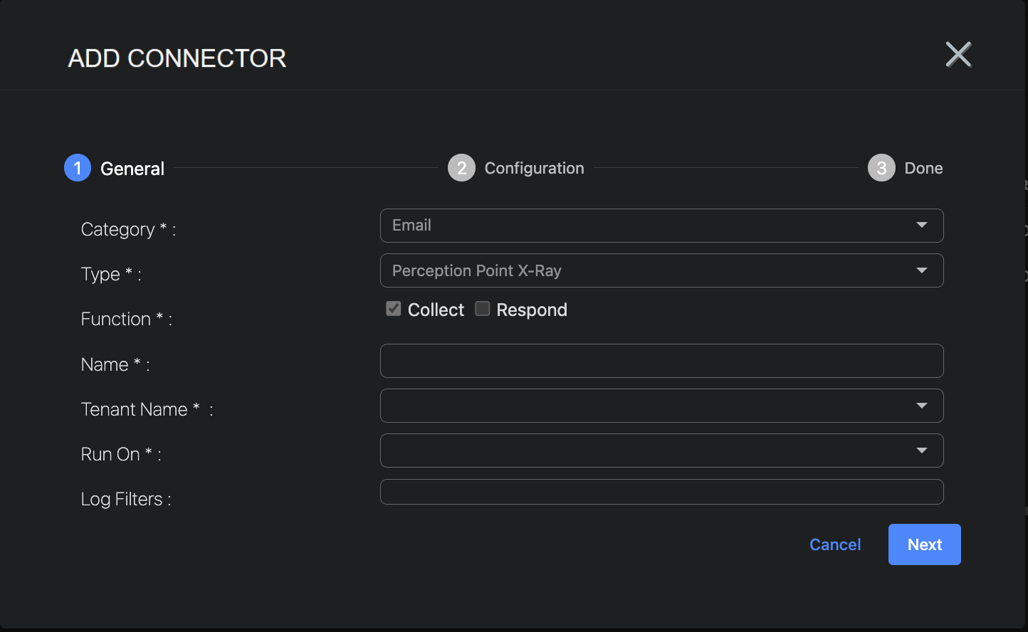 To add a Perception Point X-Ray connector in Stellar Cyber: