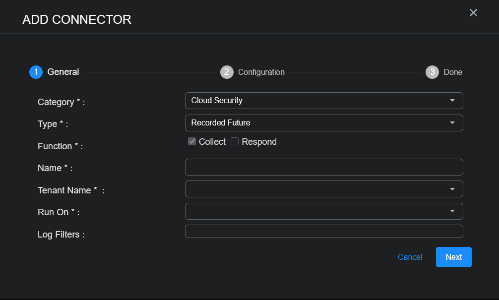 This connector allows Stellar Cyber to ingest logs from Recorded Future and add the records to the data lake. It integrates with Recorded Future APIs to ingest alerts data.