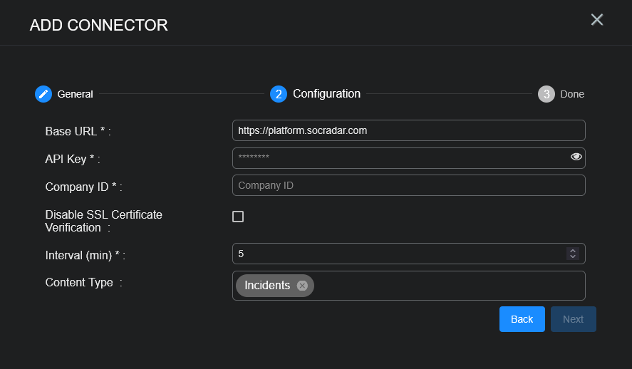 Configuring SOCRadar Connectors