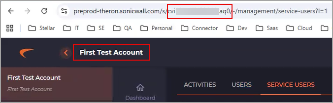 Account ID—The identifier of a user's account with SonicWall. See Getting the Account ID, Tenant ID, Group ID.