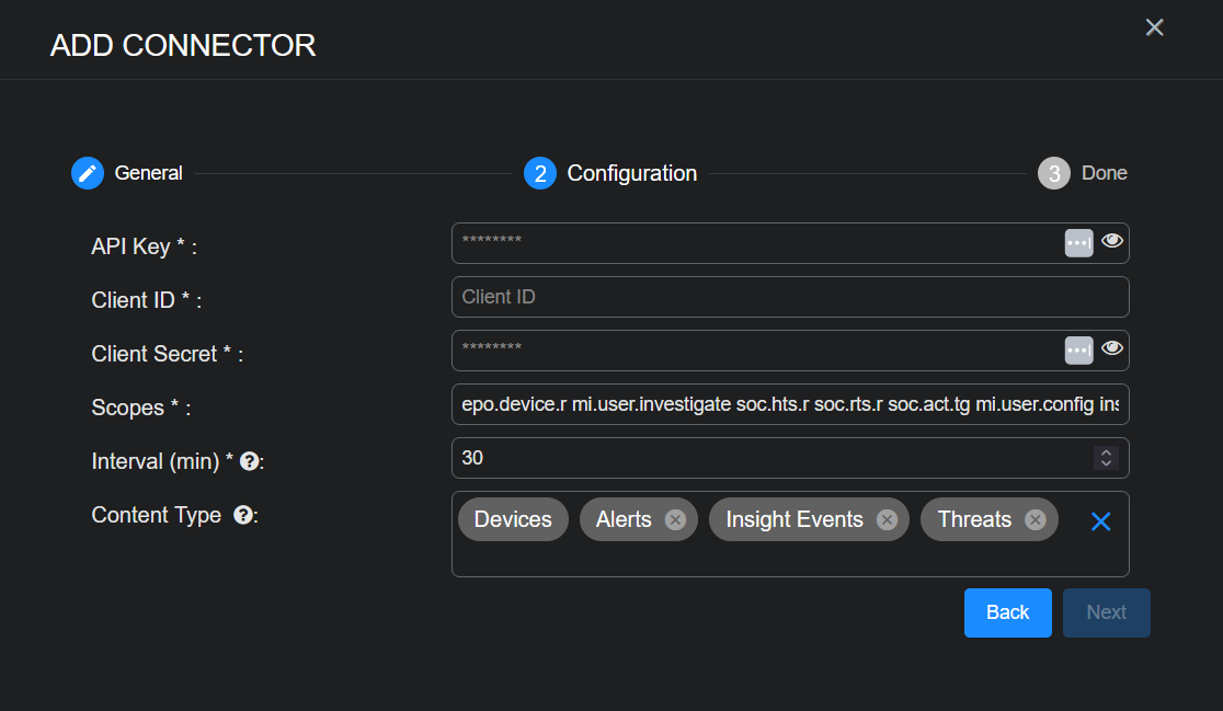 Before you configure the connector in Stellar Cyber, you must obtain the following Trellix MVISION credentials: