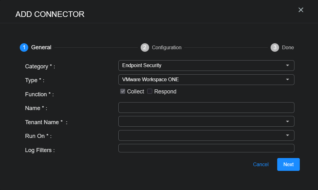 With the access information handy, you can add a VMware Workspace ONE connector in Stellar Cyber: