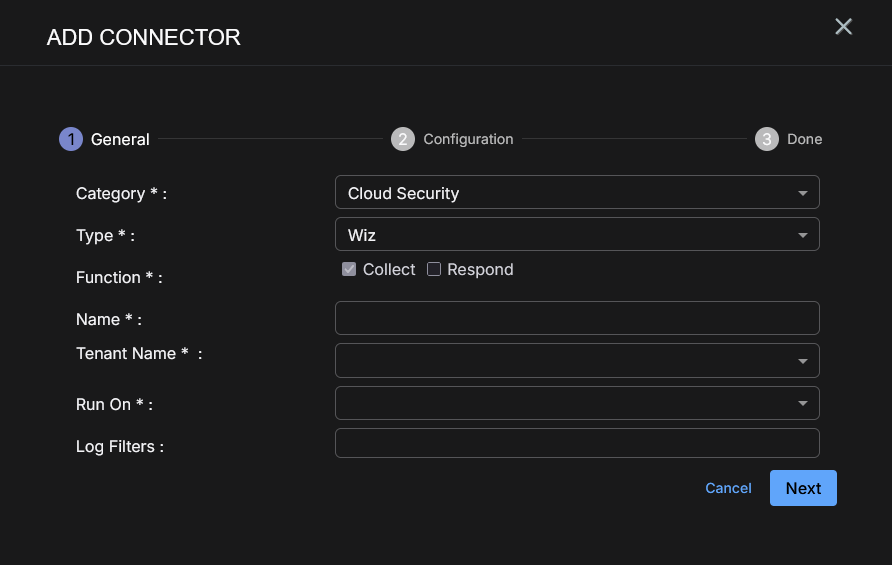 This connector allows Stellar Cyber to ingest logs from Wiz and add the records to the data lake. It integrates with the Wiz API to ingest Issues and Vulnerabilities data types.