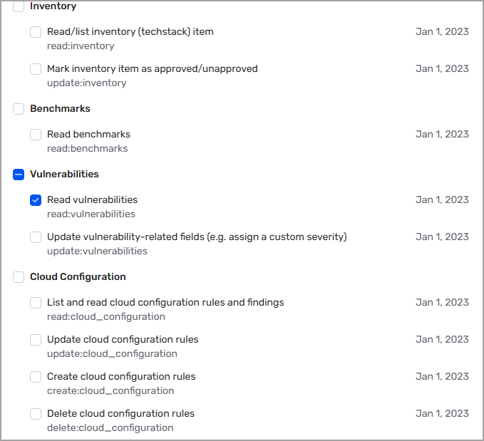 For example, under Vulnerabilities, select Read vulnerabilities.