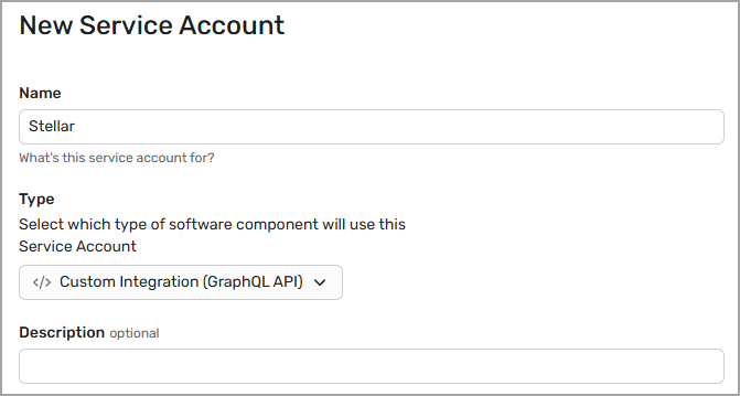 Enter a Name, an optional Description, and select a Type. For Type, choose Custom Integration (GraphQL API).