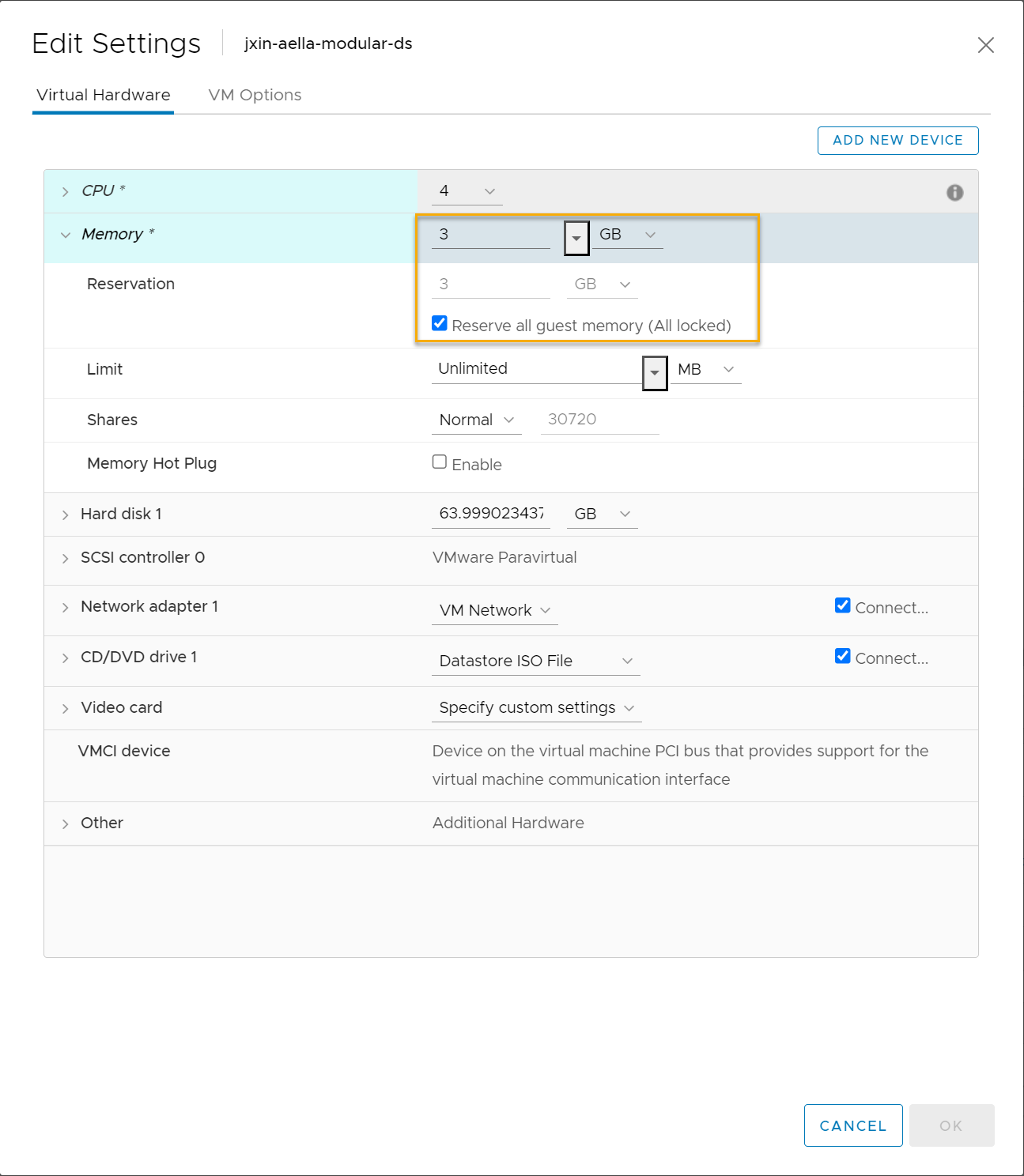 7. Check the Reserve all guest memory (All locked) option to reserve the full amount of memory for the sensor VM's usage.