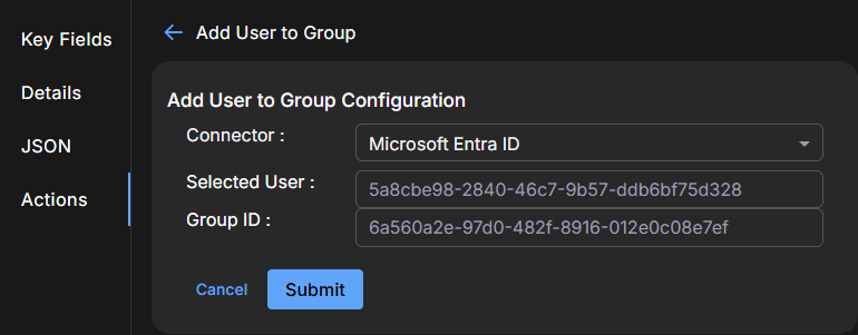 6. Click Submit. The connector runs the update action one time.