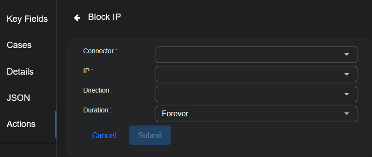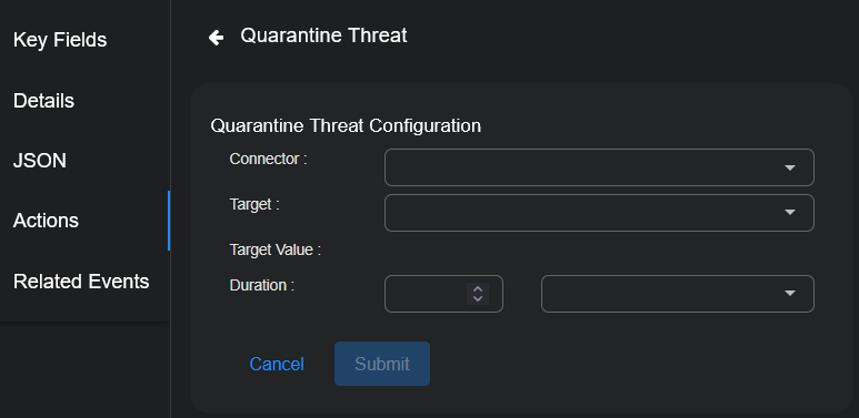 6. Click Submit. A quarantine on the target is immediately triggered from the SentinelOne service associated with your connector.