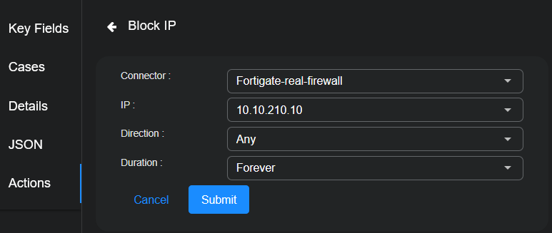 5. Click Submit. An incident is sent to the Barracuda Forensics And Incident Response associated with your connector.