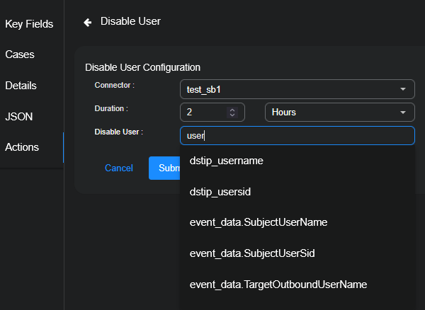 If you select a Cynet connector, the Target Value is automatically populated with related JSON information.