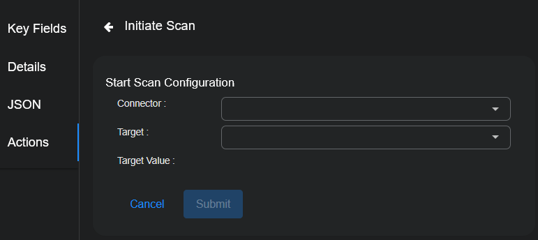 5. Click Submit. A vulnerability scan of your selection is triggered immediately from the service associated with your connector.
