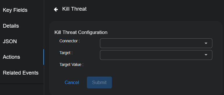 5. Click Submit. A kill threat signal on the target is immediately triggered from the SentinelOne service associated with your connector.