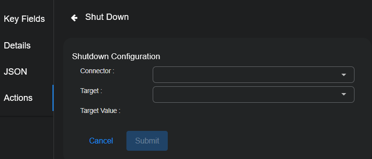 2. From the dropdown menu, select the connector you want to use to perform the shut down.