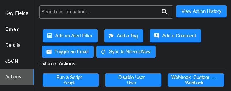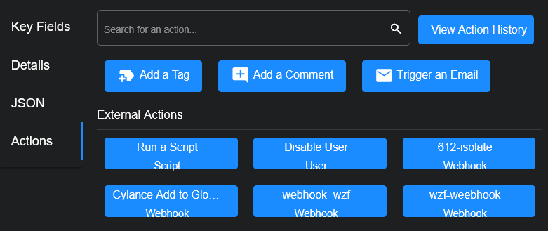 You can manually trigger a Webhook action. The action may have been created from a customization in the Universal Webhook Responder or from a predefined template in the Universal Webhook Responder or ESET Responder.