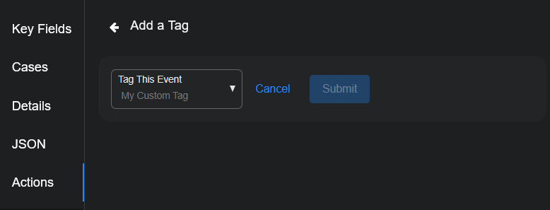 • Tags – If a user has assigned tags to the event, the tags appear in this section. (You can add tags in the Actions section, described next.)