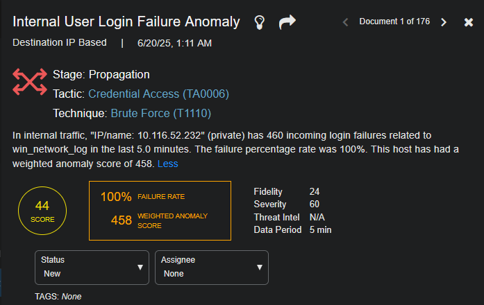 • Threat Intel – the reputation of the IP addresses and URLs as assessed by the threat intel sources. The higher the Threat Intel Score, the worse the reputation. If this is high, it drives the Alert Score higher. If this and the Fidelity Score are low, they reduce the Alert Score.
