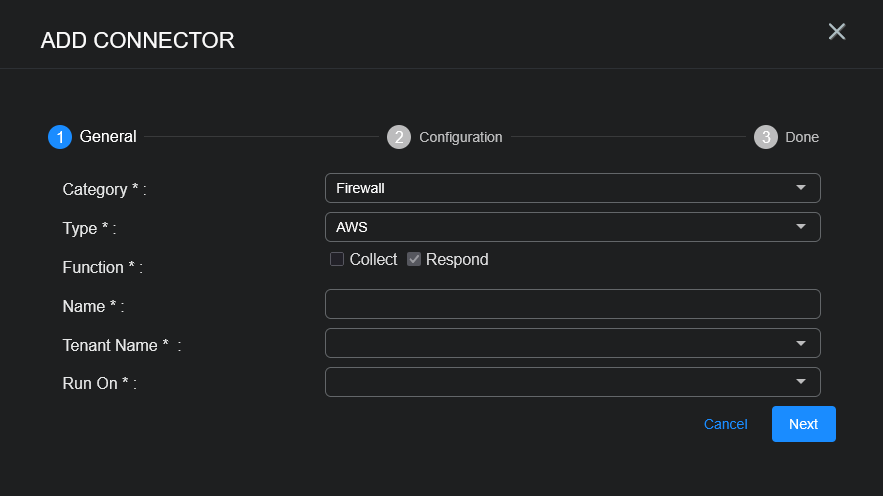 Stellar Cyber conducts a basic connectivity test for the connector and reports a success or failure result. A successful test indicates that you entered all of the connector information correctly.