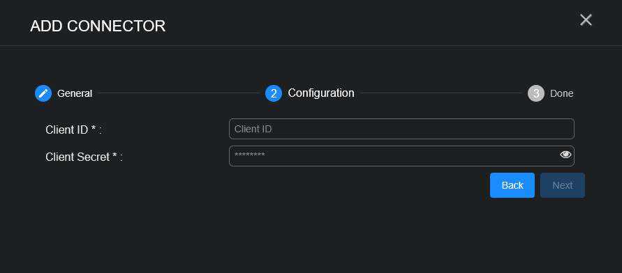 Enter the Client ID and Client Secret noted in the previous section.