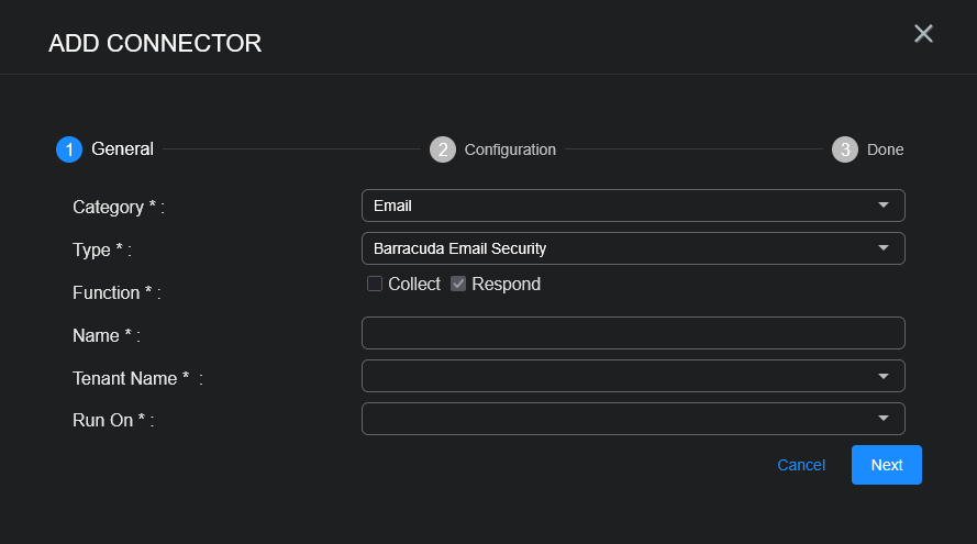 To add a Barracuda Email Security connector in Stellar Cyber: