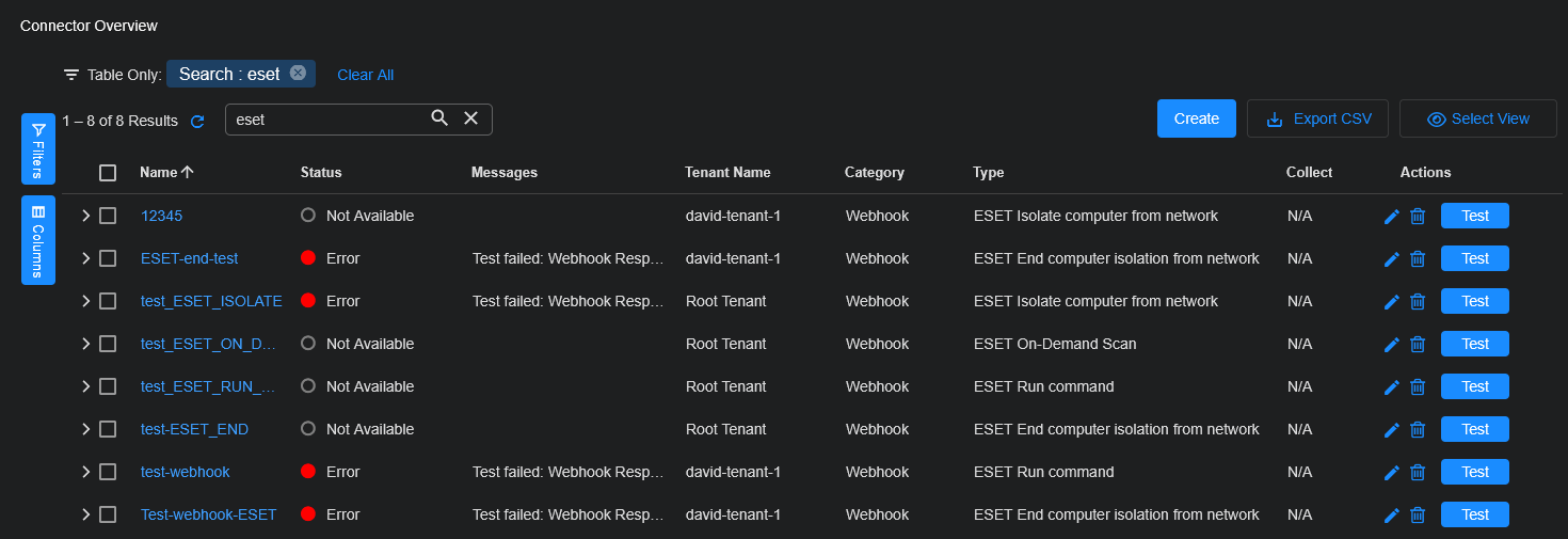 When you define an ESET Responder, we recommend that you run a test to validate the connectivity parameters you entered. (The test validates authentication / connectivity).