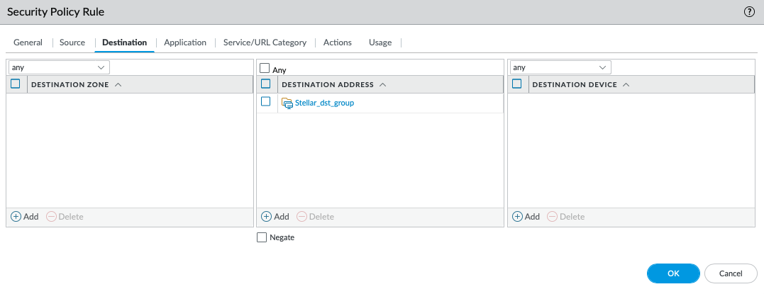 16. Enter the Destination IP Group you created (for example, Stellar_dst_group).