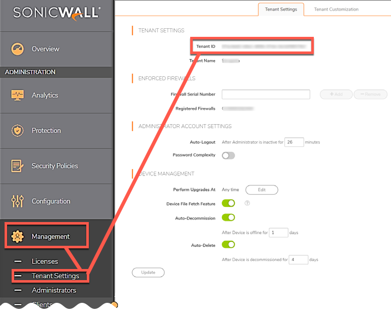 Enter the Sonicwall Tenant ID you noted above, if you chose Collect.