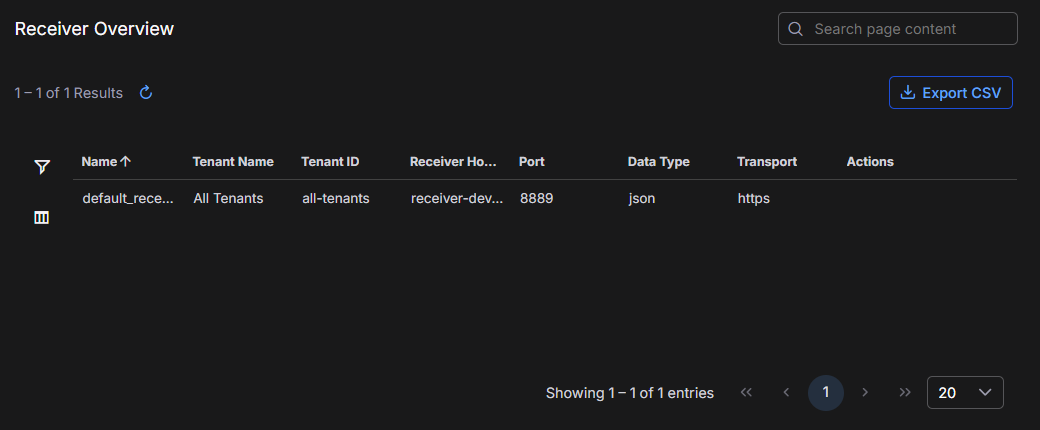 Select System | DATA SOURCE MANAGEMENT | Receivers to see a list of the configured receivers.