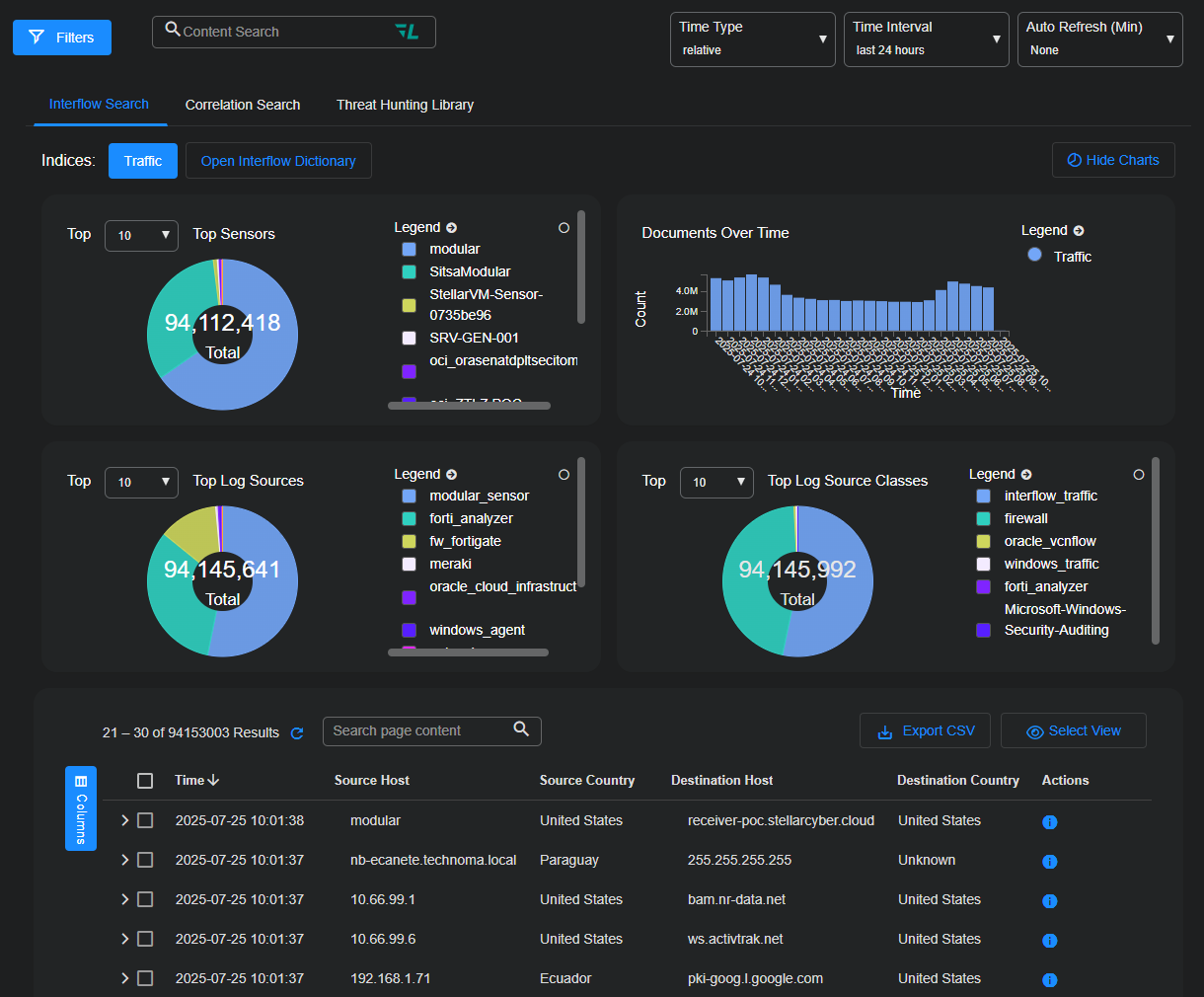 When you leave this page, any filters remain selected. So you can continue your threat hunting on other parts of Stellar Cyber.