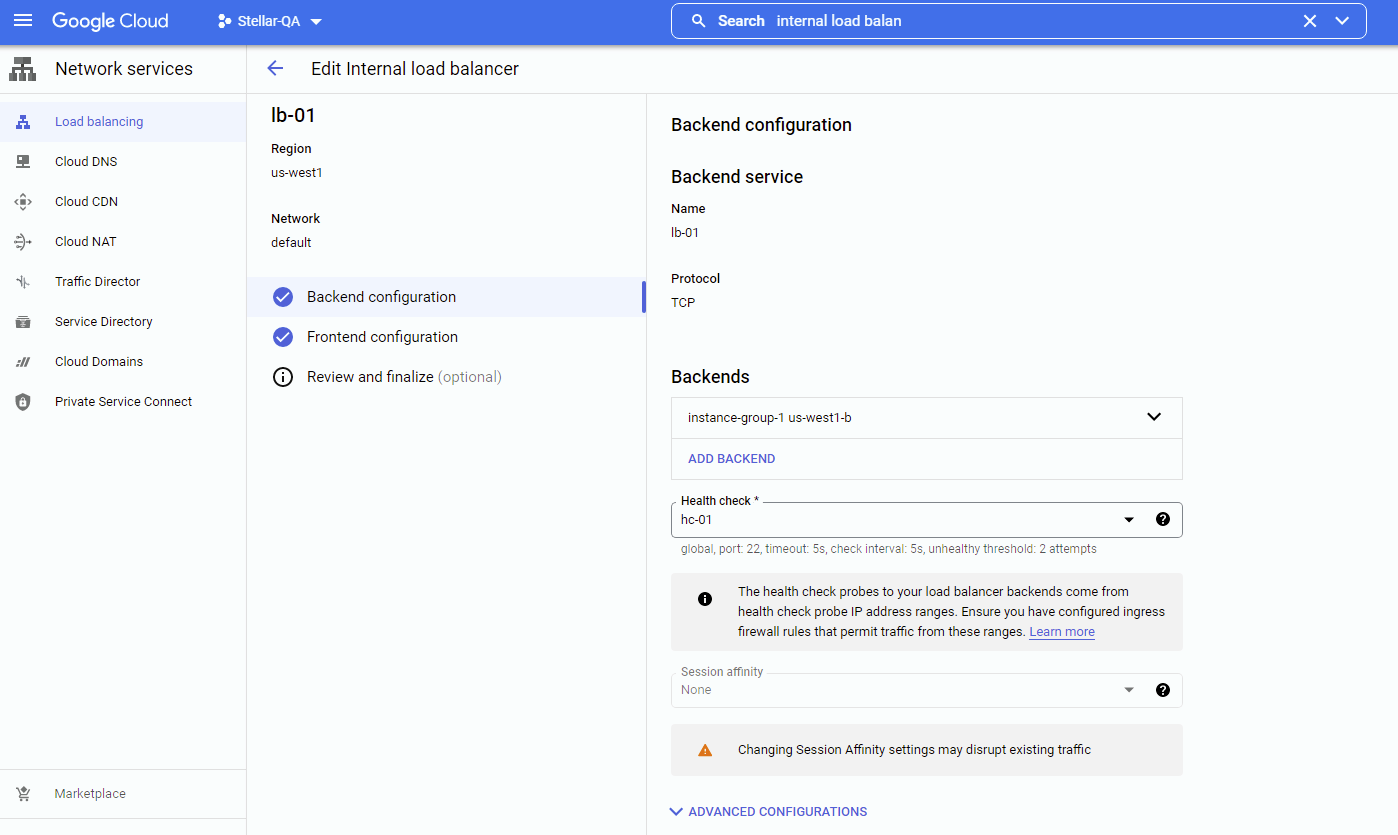 Next, we’ll set up an internal load balancer to distribute traffic from a frontend collection point to our backend sensor instance.