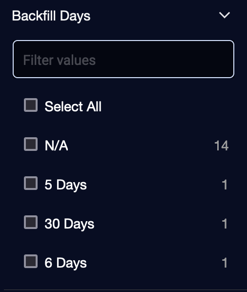 Select the number of Backfill Days, in days. The minimum value is 1 day and the maximum is 30 days.