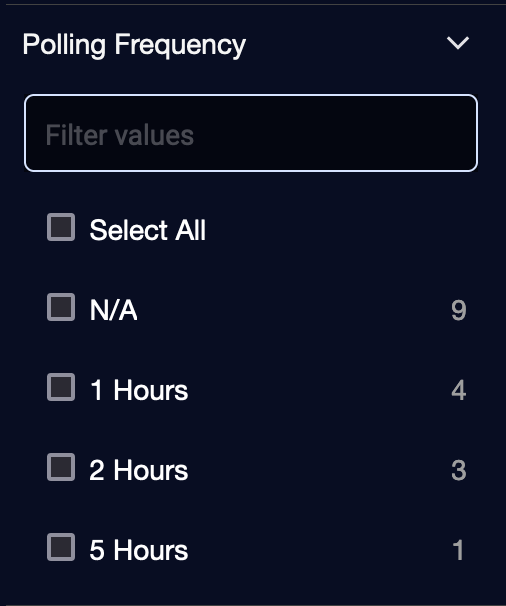 The Polling Frequency can be set for Custom and Premium feeds; for Built-in feeds, the Polling Frequency is 24 hours