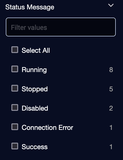 For Status Message, select a status using the check boxes. The number of feeds with each status is displayed on the right.