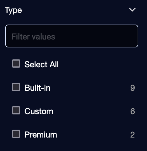 If a defined filter is unselected, you can click the search box under Add new filter to select a filter from the dropdown.