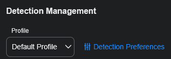 You configure Detection Preferences from the top left of the Detection Management page. The Detection Preferences are the specific detection settings configured for a selected profile. For example, if the Default Profile is selected, the Detection Preferences you choose will be applied to the Default Profile.