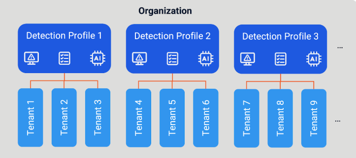 Within an organization, there can be multiple Detection Profiles with each tenant assigned to a profile.