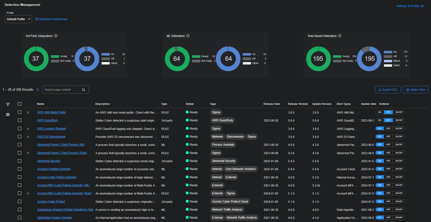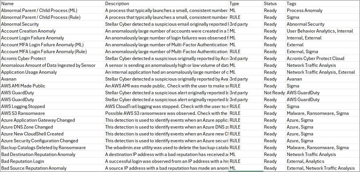 Release Version—Version in which the detection was released in the Stellar Cyber platform.