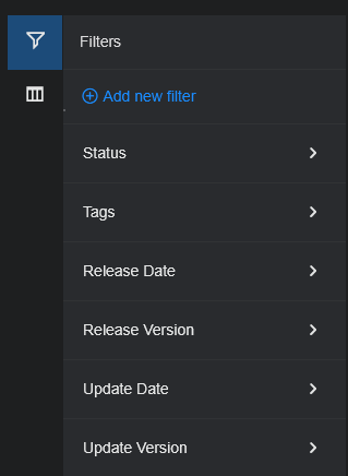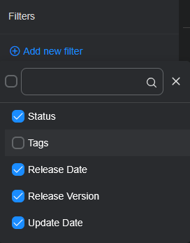 ) to include filtering keywords: Starts with, Contains, Not contains, Ends with, Equals, Not equals, and No Filter. -