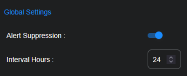 If Alert Suppression is on, select the Interval Hours from 1 hour to 24 hours. The default is 24 hours.