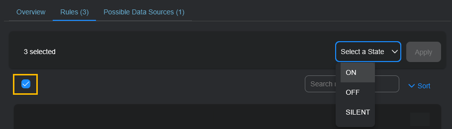 Mixed—detections that are a mix of On, Off, or Silent. (Mixed mode is only available for Rule Based Detections as this state is based on the state of the individual rules within the Rule Based Detection).