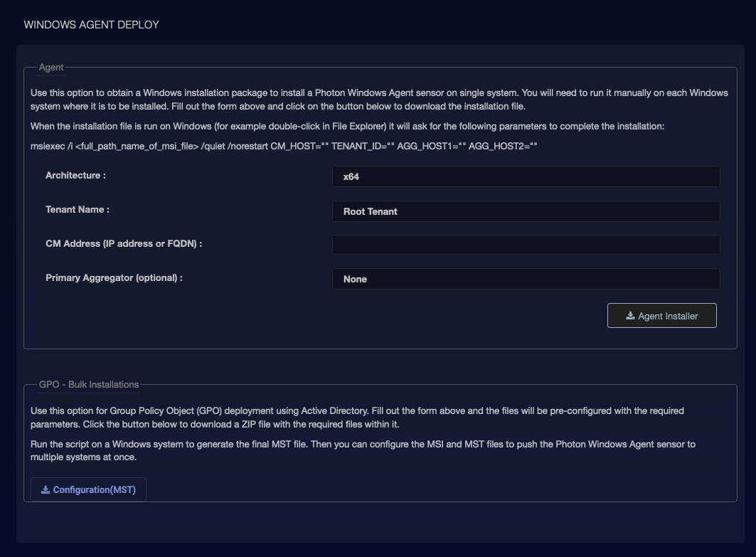 Tenant ID – If this sensor is to be assigned to a tenant, you can specify the Tenant's ID here. You can get the Tenant from the User Management screen. If you do not specify a tenant, the sensor is assigned to the root tenant.