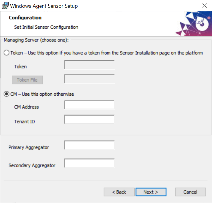 CM Address – Specify the IP address of the DP managing the Server Sensor. The agent will automatically add itself to the DP specified here in the Collect | Sensor Overview page.